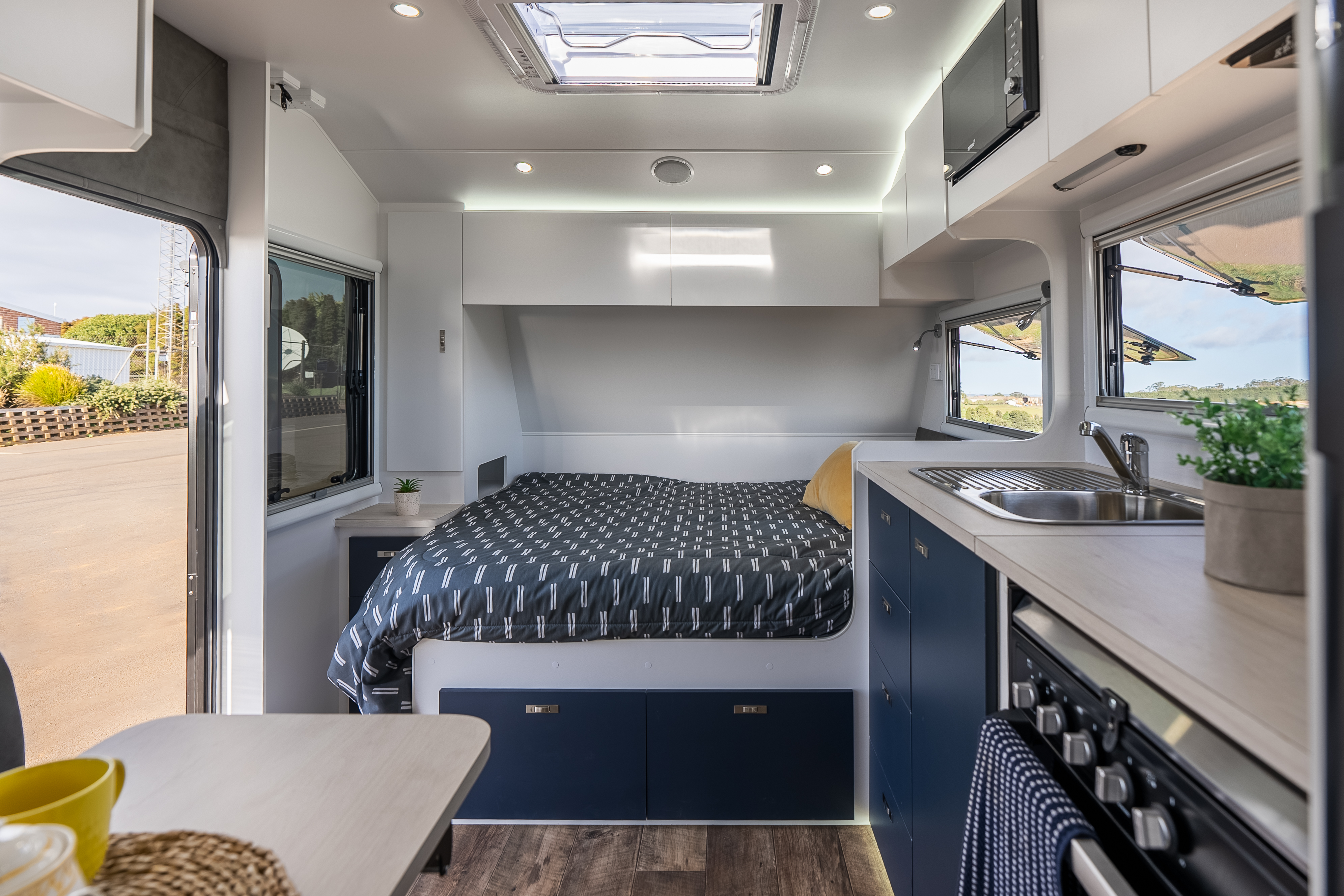 A proper oven, quality cooktop, and ample bench space make meal prep a pleasure rather than a chore. Generous storage for provisions means you can head further off the beaten track between resupply stops.