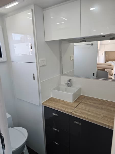 Step into a full ensuite that rivals many larger vans. Hot water on demand, a generous shower, and quality fixtures throughout — because roughing it on the road doesn't mean giving up the comforts of home.