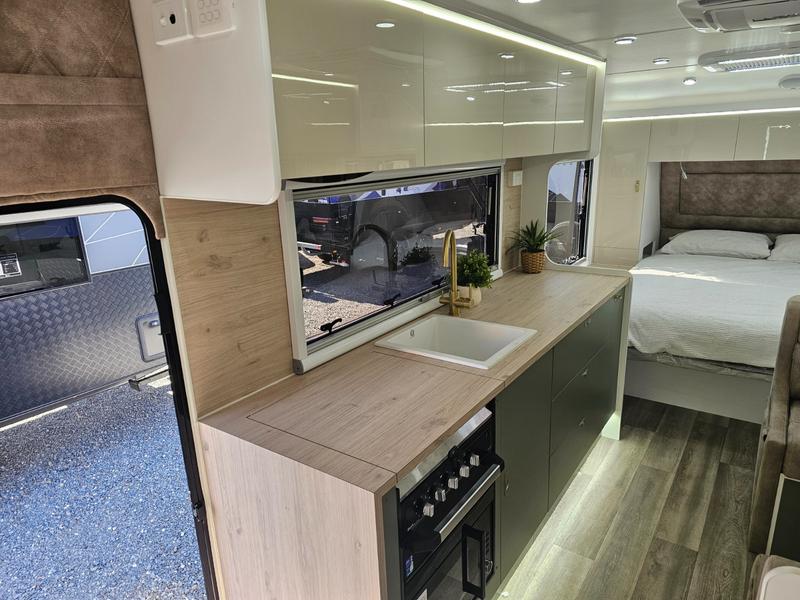 From the 16-inch mud terrain tyres to the aluminium composite walls, every component is chosen for durability in the harshest Australian conditions. Stone guards, raised entry, and protected underbody plumbing mean you can push further with confidence.